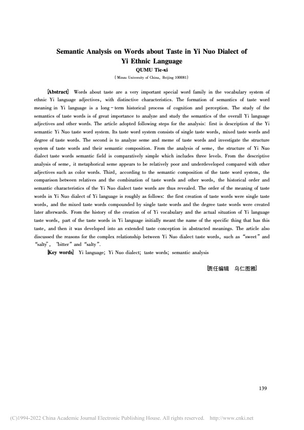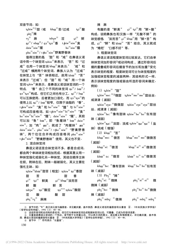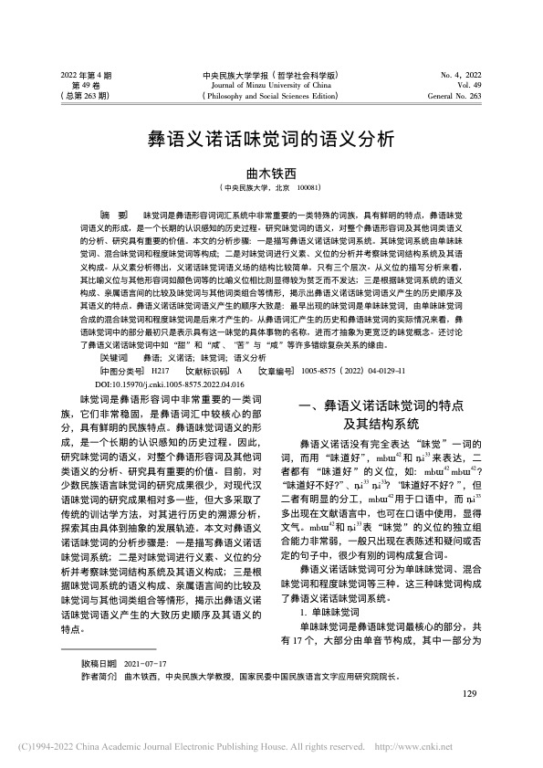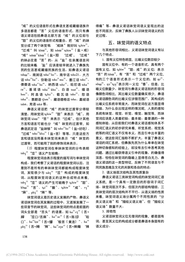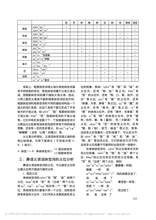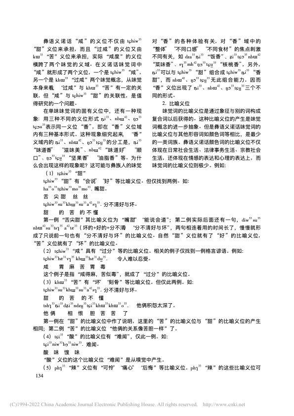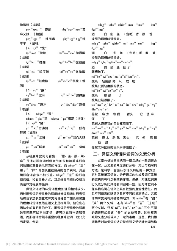 曲木铁西|彝语义诺话味觉词的语义分析