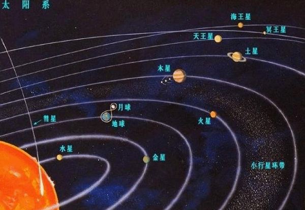 此图表明太阳系个行星位置