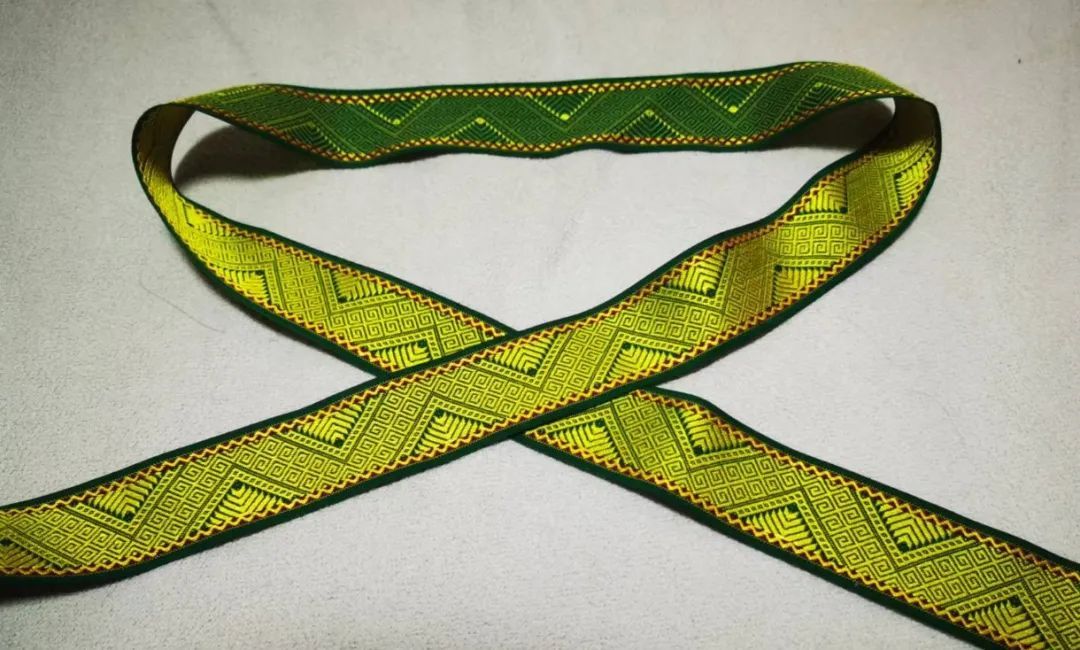图为作者受赠于凯里苗族大姐的锦带。她们织带前并没有图纸,完全是存乎一心。